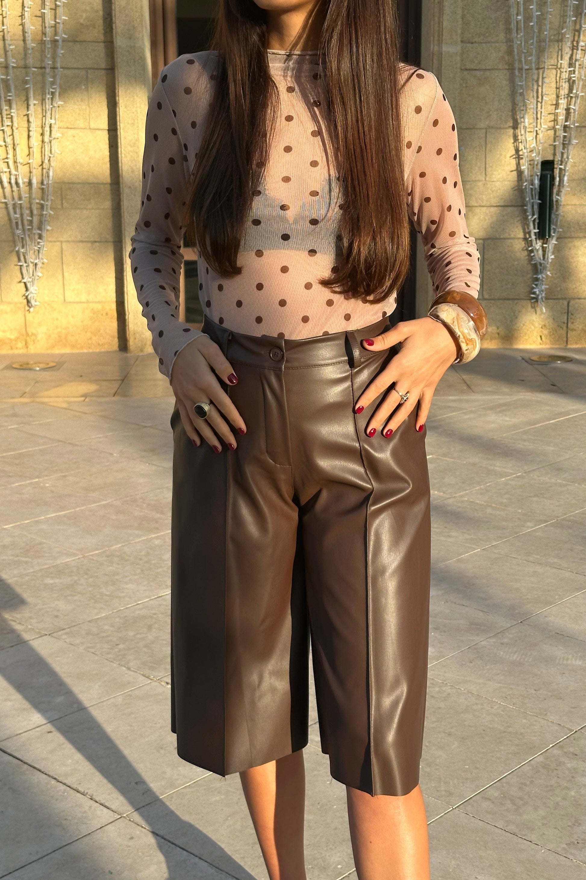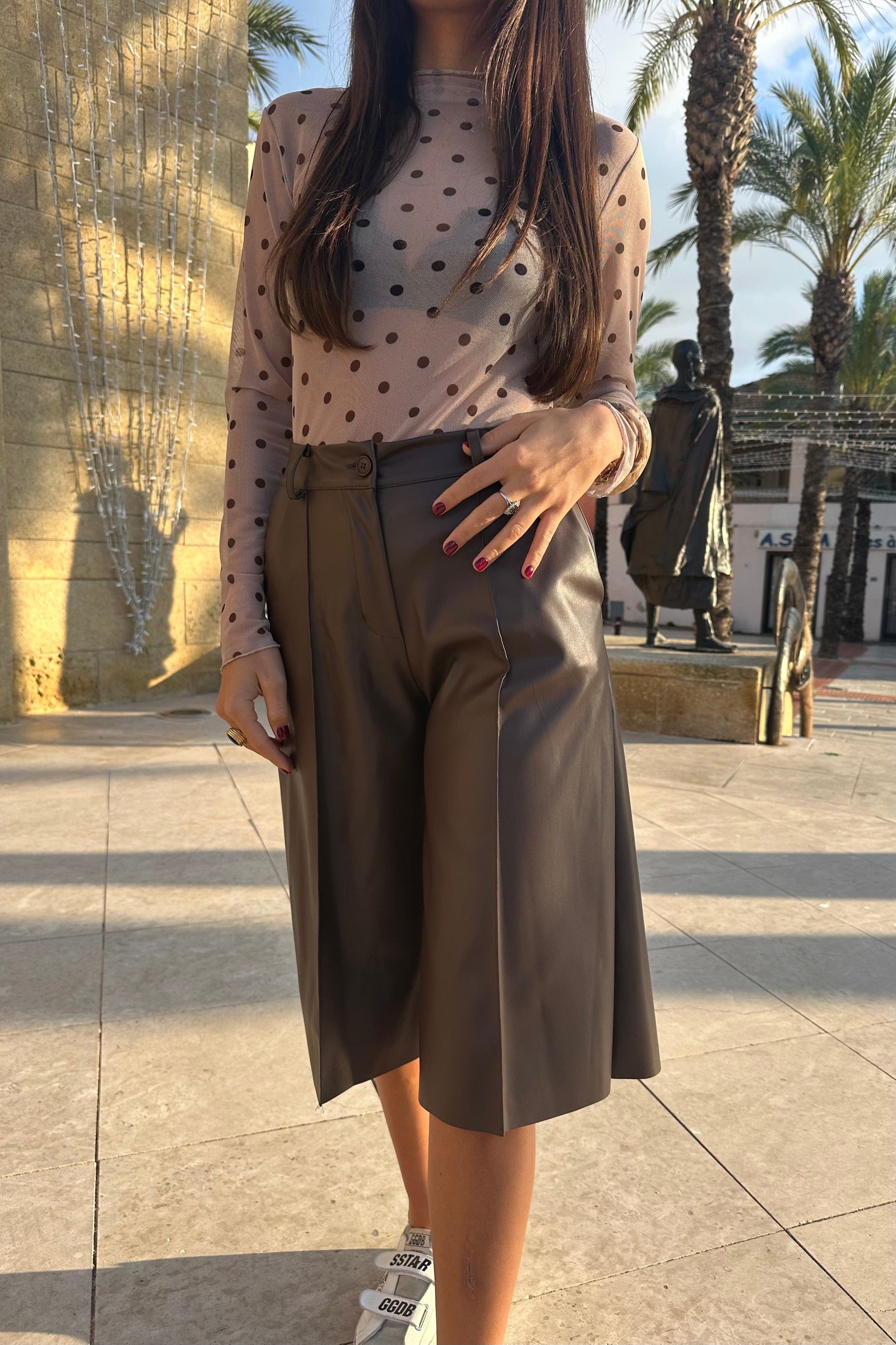 Le bermuda Berni marron en simili cuir est la pièce tendance de la saison !