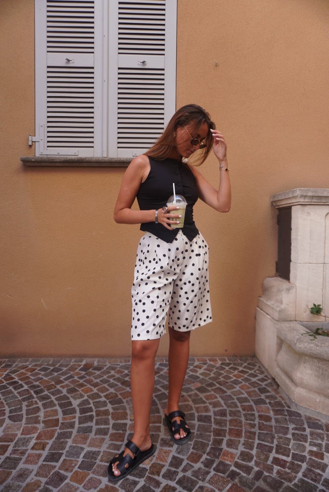 Le bermuda LENA incarne la simplicité avec une touche d’audace. Son imprimé a pois ajoute une touche de modernité tout en restant élégant avec sa coupe droite. C’est une pièce a la fois pratique et tendance. Il devient vite un incontournable dans votre garde-robe !