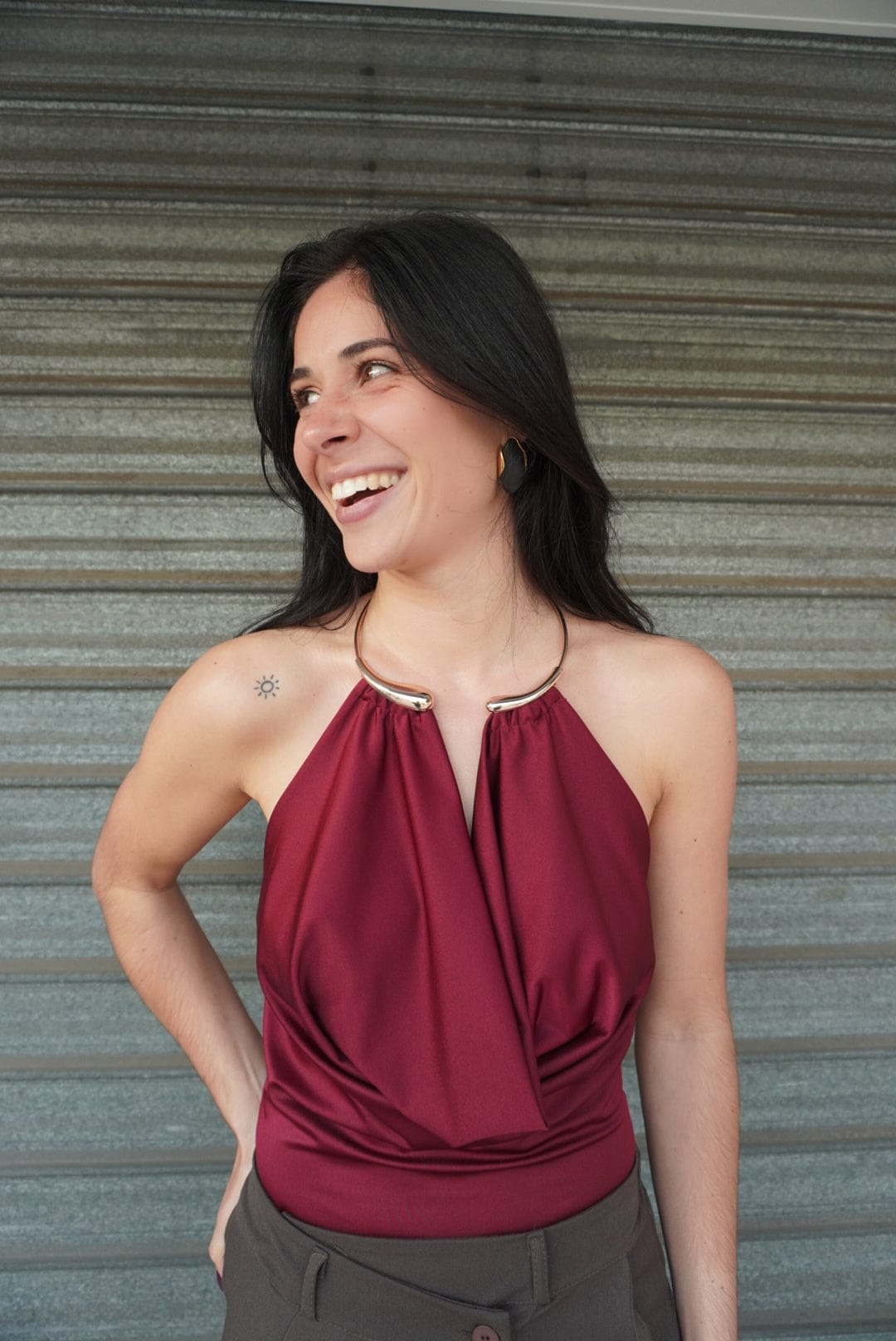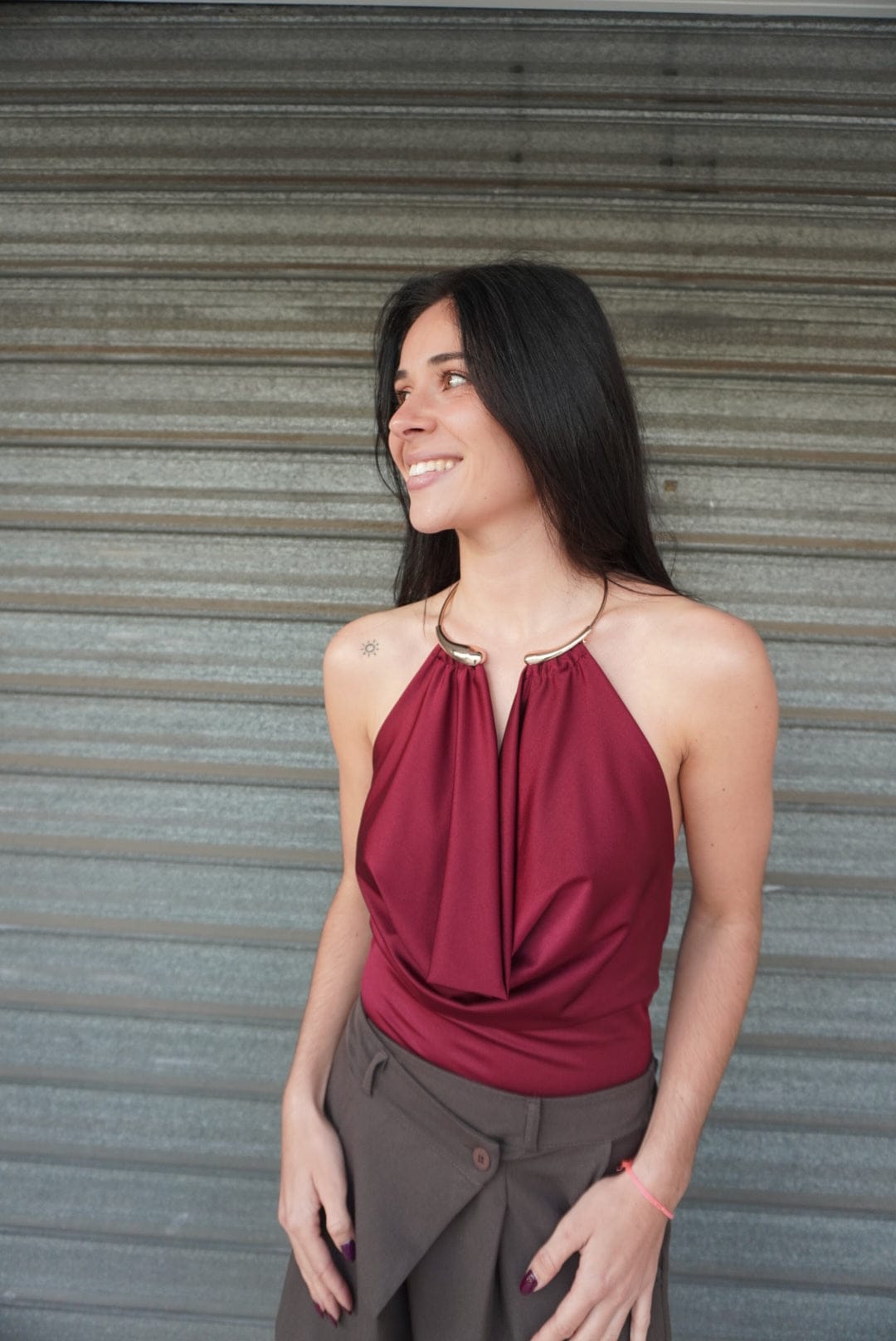 Son détail collier intégré sublime le décolleté, sa matière stretch épouse le corps avec élégance.