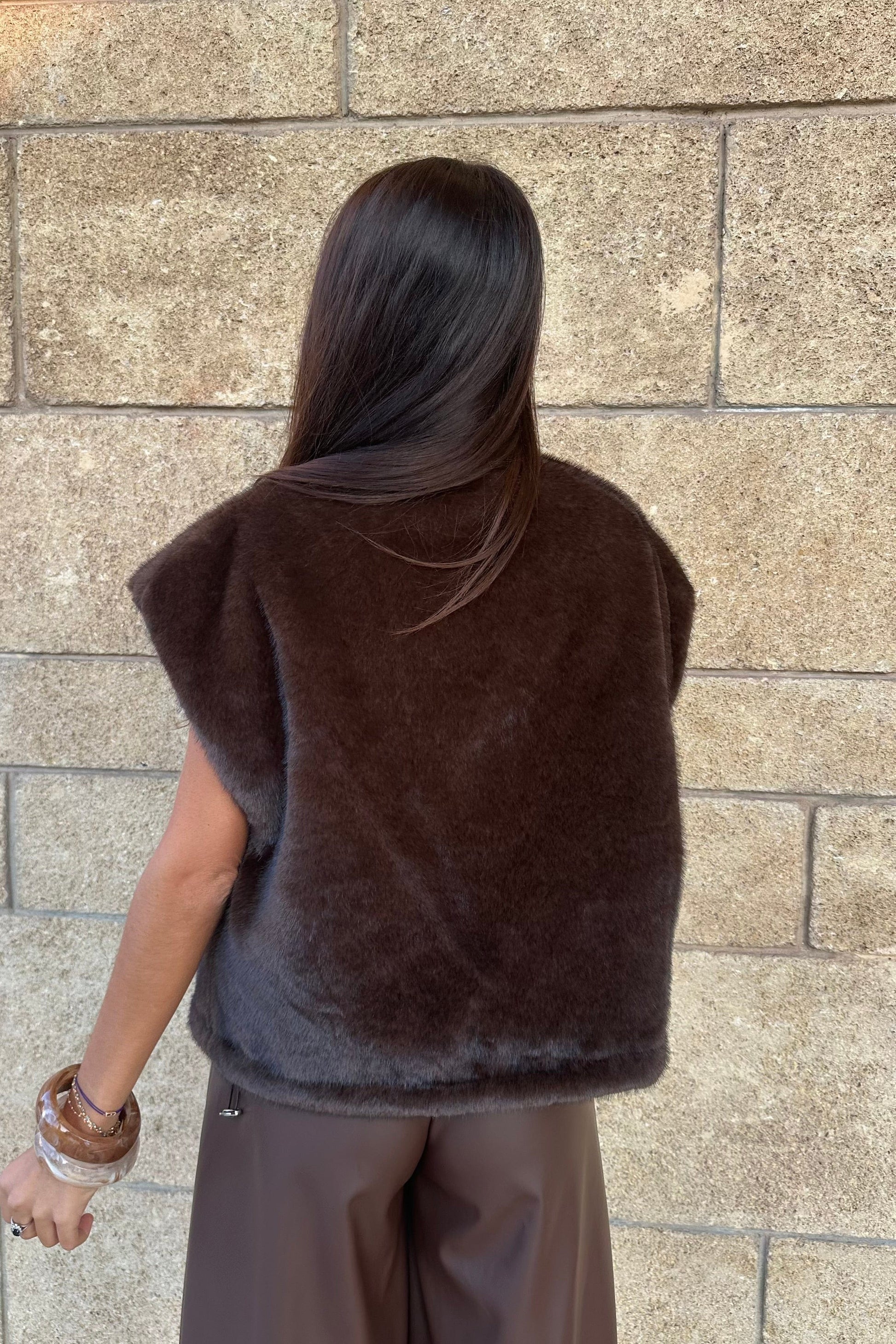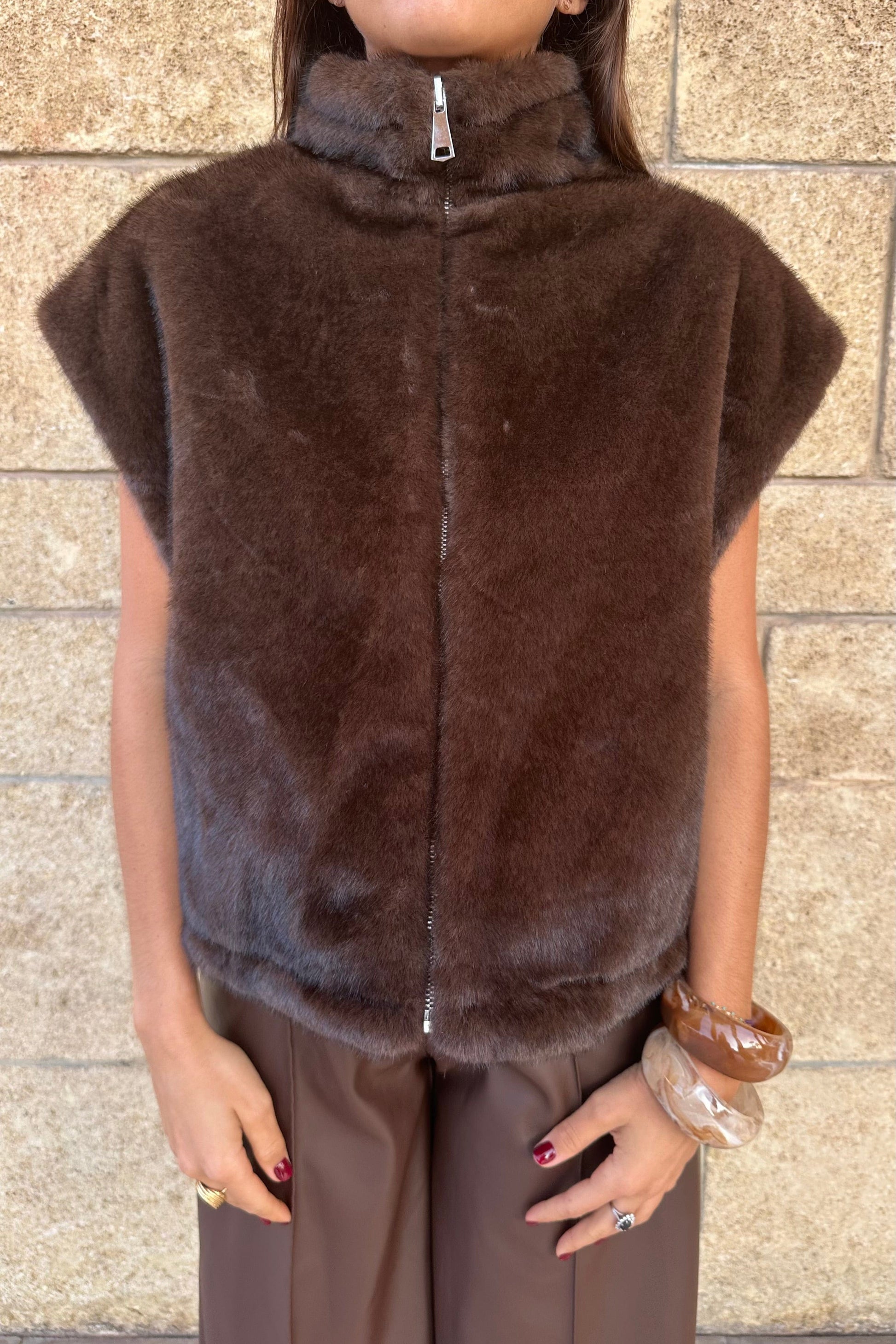 Fermeture zippée, sans manche et teinte marron chaude Maelyne est la pièce versatile de votre dressing automne hivers.