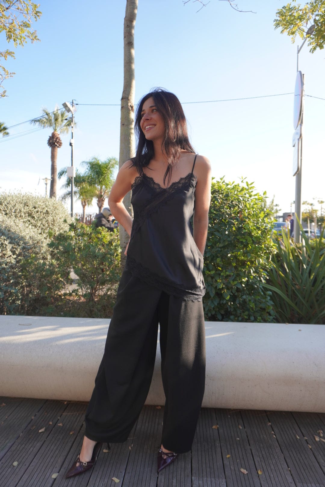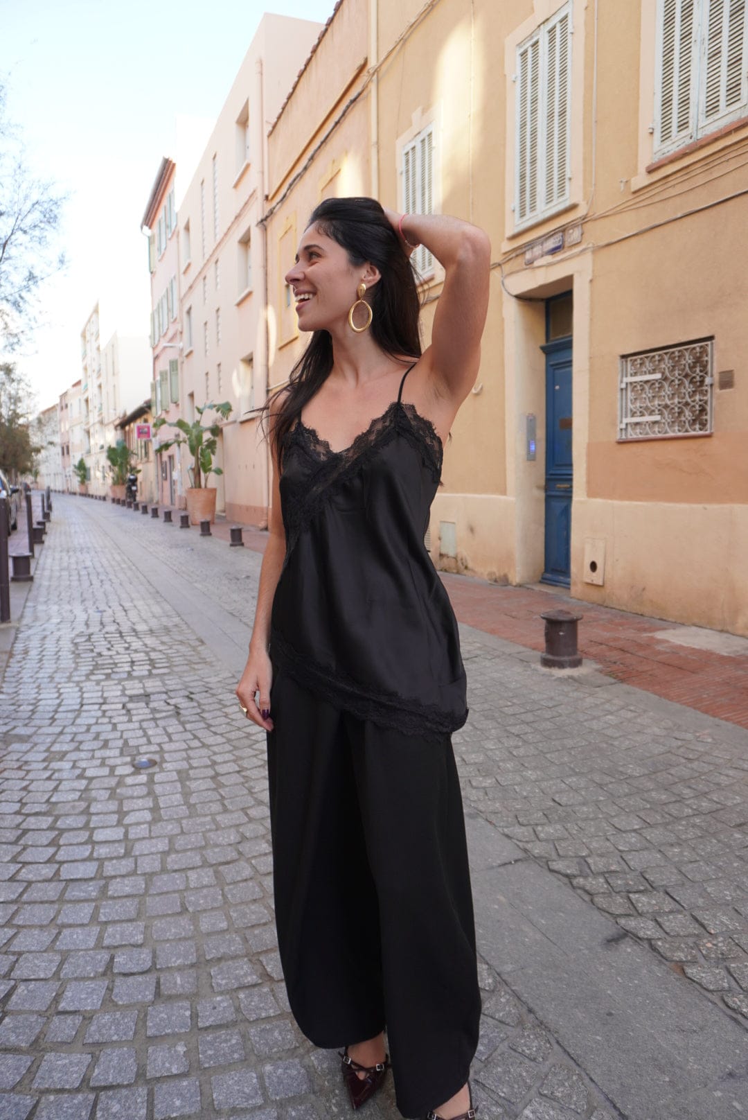 Ce top en satin avec dentelle Jody séduit par son mélange de matière et son jolie décolleté délicat. Idéal pour un look de jour comme de soir.